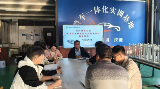 为积极推进汽车维修专业工学一体化教学改革,进一步提高教师的专业素养和工学一体化教学能力,规范教师日常教学行为,10月23日下午,车辆工程教研室组织开展一体化教学公开课研讨活动暨《学校日常教学行为处罚条例》集中学习。