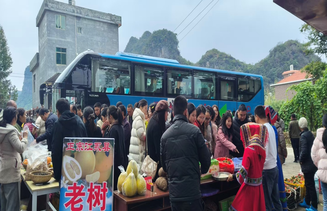 工会会员一行先后走进江永县东铺村、上甘棠村、勾蓝瑶寨等乡村振兴示范村,实地感受产业发展与乡村蝶变。在江永县东辅村乡村振兴产品展销现场,“江永五香”(香柚、香芋、香姜、香米、香菇)、砂糖橘、手工香粽等特色农产品琳琅满目。校工会提前与当地合作社对接,梳理形成特色产品清单,会员们根据家庭需求有序选购,现场洽谈声、称重声此起彼伏。