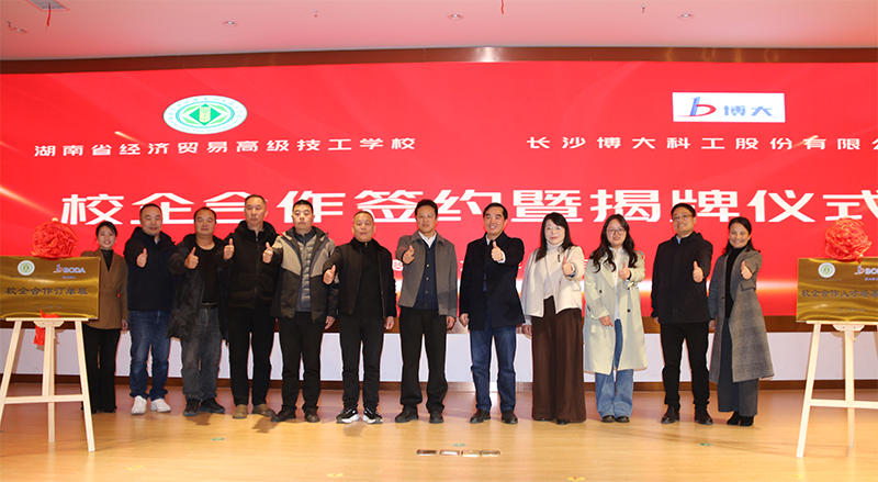 仪式上,我校副校长伍嗣宏与长沙博大公司董事长助理梁晓红分别代表双方签署了校企合作协议,副校长肖力青与董事长蒋剑锋共同为“校企合作人才培养基地”与“校企合作订单班”揭牌。