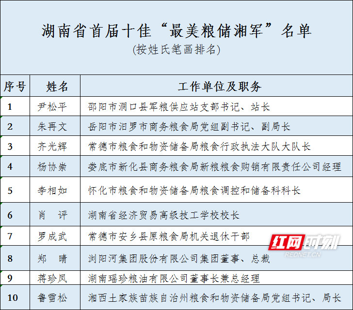 转载湖南频道报道 湖南省首届!十佳“最美粮储湘军”是他们,有你认识的吗